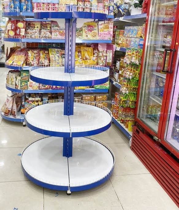 - Chức năng: Giúp trưng bày sản phẩm theo dạng xoay vòng, tăng khả năng tiếp cận từ nhiều hướng.